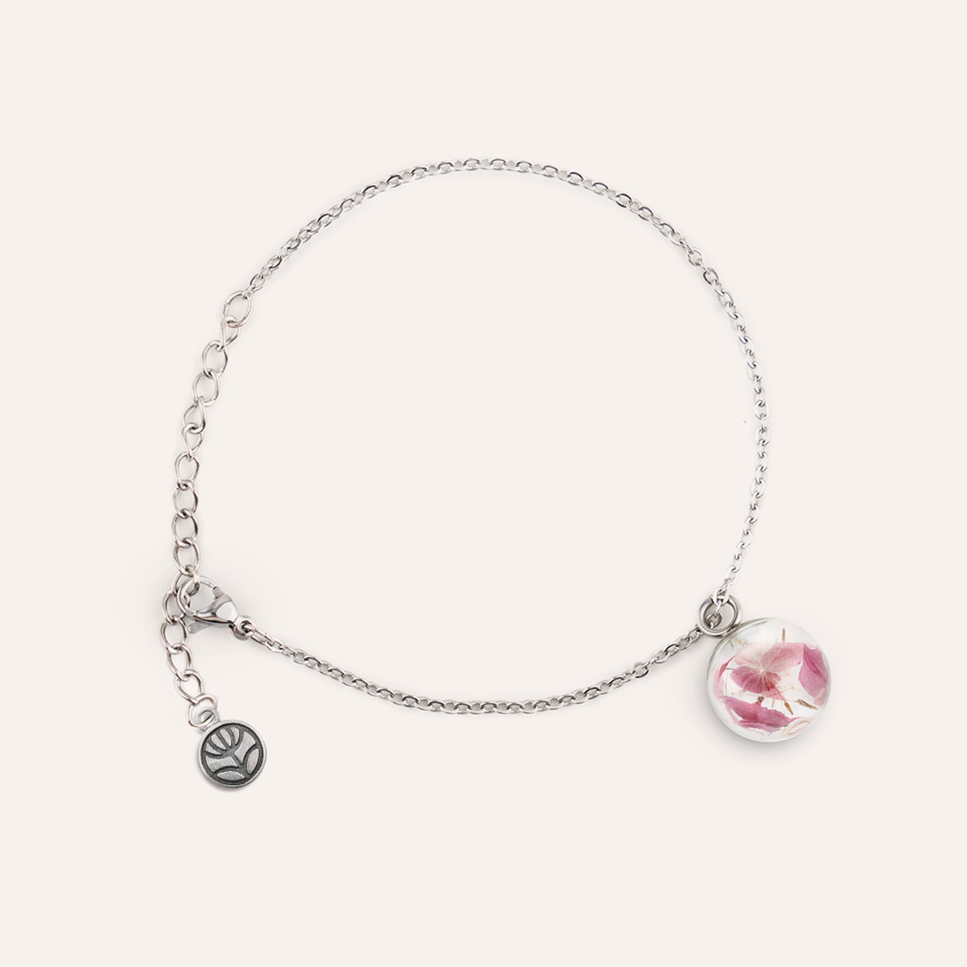 Il suo fiore è ritenuto un portafortuna. Un accessorio raffinato e significativo, ideale per chi ama la natura. Il bracciale (diametro di 14,5 cm + 4 cm di regolazione) è realizzato in acciaio inossidabile anallergico certificato AISI 316, perfetto anche per le pelli più sensibili. L'ampolla in resistente vetro soffiato temprato, contiene fiori di Ciliegio Giapponese essiccati naturalmente.